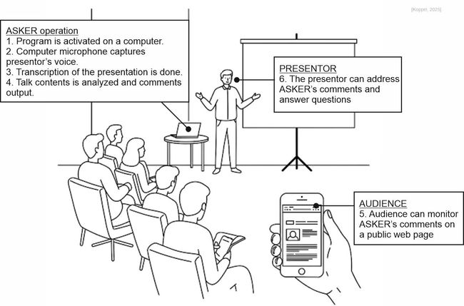ASKER – Attentive Spoken Knowledge Evaluator and Rebutter, eesti keeles – tähelepanelik kõneldud teadmiste hindaja ja vastuväitja. See on generatiivse tehisintellekti tööriist, mis kuulab suulist ettekannet ja kujundab arvamuse määratud profiilist lähtuvalt, näiteks läbi tunnustatud ärikooli professori vaatenurga. Tööriist kuulab ettekannet ja annab tagasisidet, hinnates: 1) ettekande aktuaalsust, 2) kommenteerides puudujääke ning 3) esitades küsimusi. Väljundit uuendatakse igal minutil vastavalt kogunenud infole kogu ettekande vältel. Arvutiprogramm kuulab ja analüüsib ettekande sisu. Avalik veebileht kuvab ASKERi arvamusi ja kommentaare.